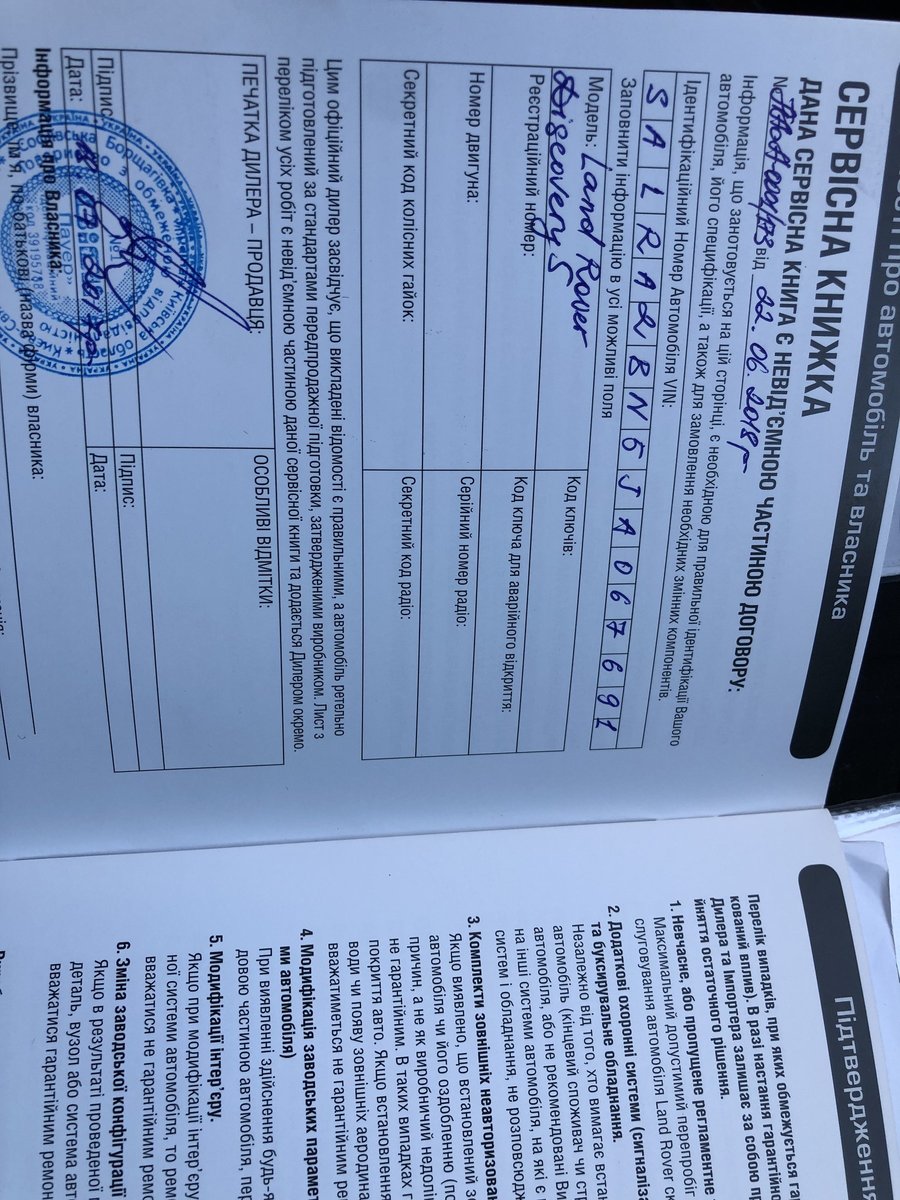 | Авто | Land Rover Discovery SE |