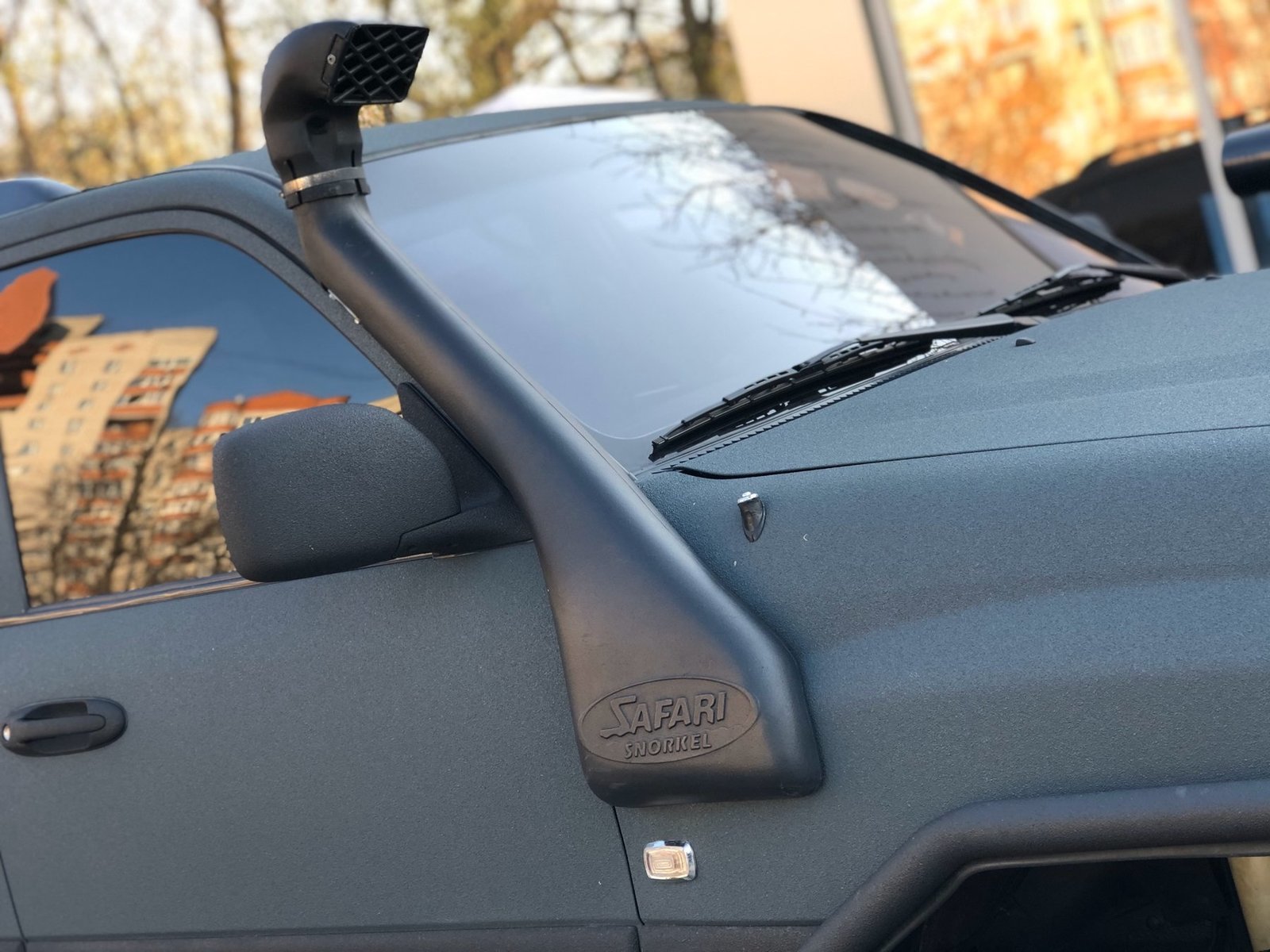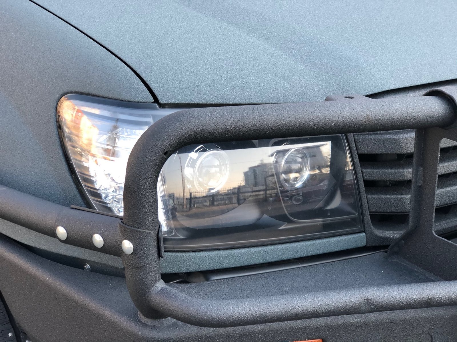 Окрашен с проёмами краской Raptor